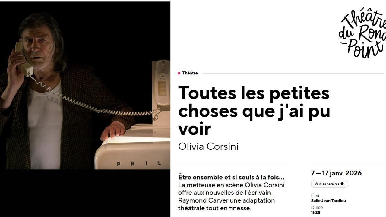 La metteuse en scène et comédienne Olivia Corsini s’empare de l’univers de l’écrivain étasunien Raymond Carver dans Toutes les petites choses que j’ai pu voir. Ce nouveau spectacle, qui était joué au théâtre du Rond-Point à Paris, présente une traversée peuplée de personnages ordinaires au moment précis où leur vie vacille.